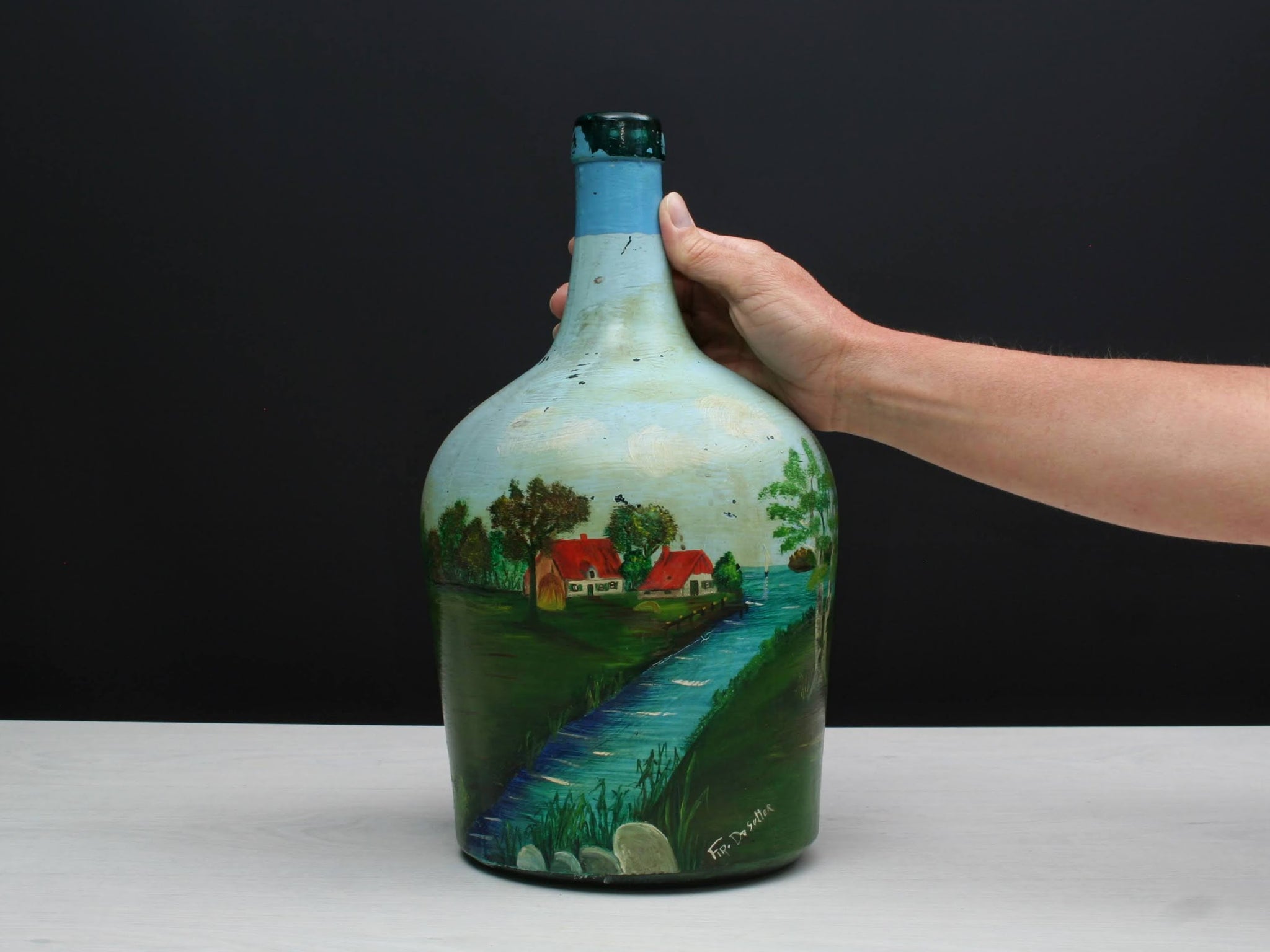 Hand Painted Wine Bottle Collectible Vintage Bottle Art Newtomedecor